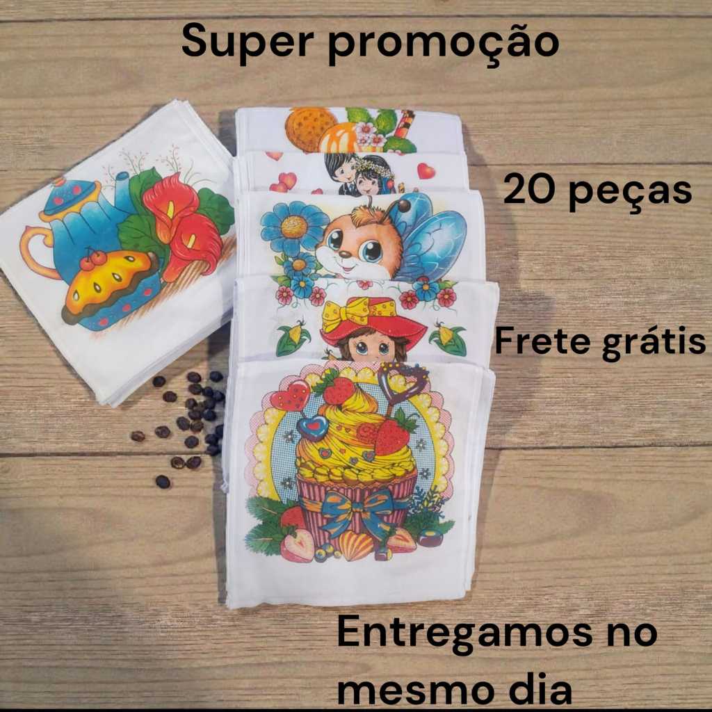 Kit 20 Panos de Prato Direto Da Fábrica Estampados Para Cozinha 60 x 35