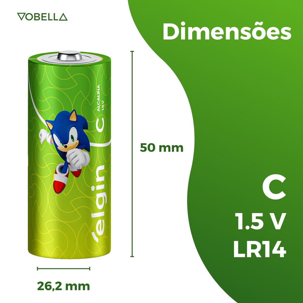Kit 20 Pilha Bateria Alcalina C LR14 Médio 10 Cartelas Elgin