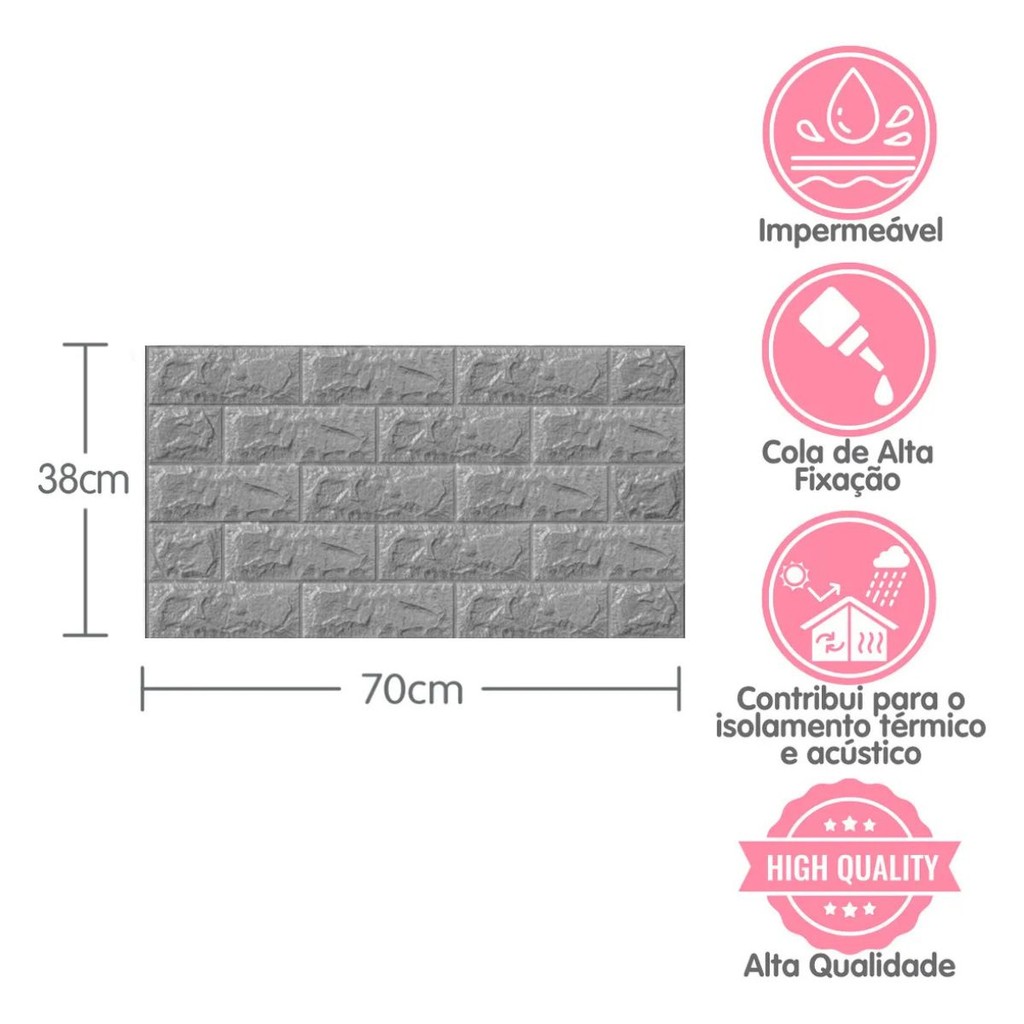 | Kit 20 Placas 3D Tijolo Cinza 70x38 Adesivo Autocolante Decoração Q... este produto | R$ 77,57 | 53% | 5.0/5 | — |
