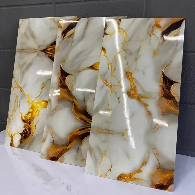 Kit 20 Placas Adesivas 3D Mármore Dourado Vinílico Lavável Autocolante Relevo Parede 30x60cm