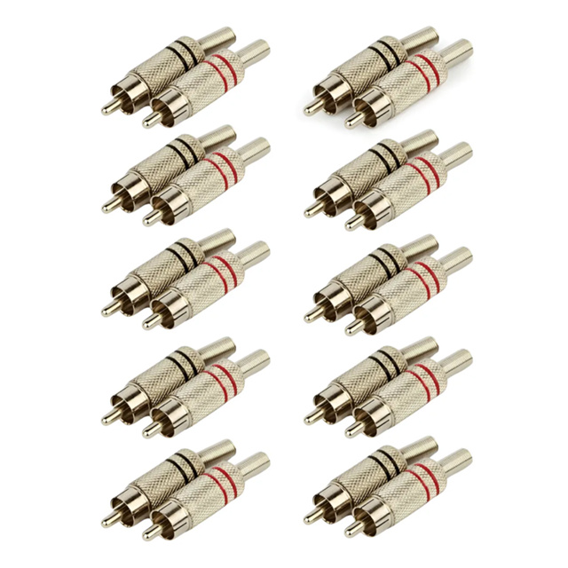 Kit 20 Plug Conector Rca Macho Blindado Metal Prateado 10 Pares