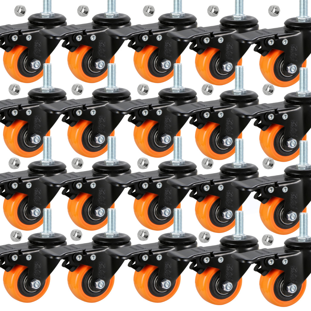 Kit 20 Rodinha Para Moveis Rodízio Roda Giratória com Parafuso 8mm Espiga Trava 1,5"Borracha PVC RRJ