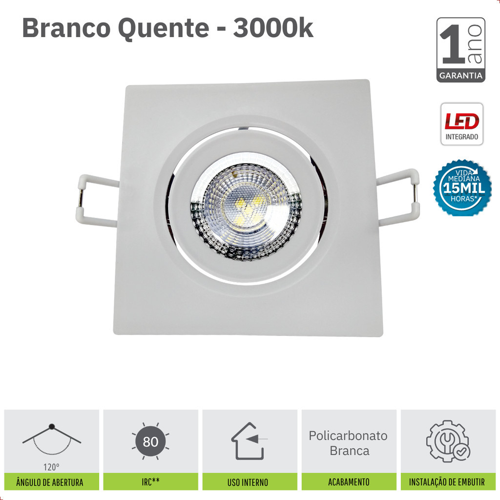 Kit com 20 Luminária de led Interna Spot 7w 110v/220v Ilumine seus ambientes com praticidade e elegância! O Kit com 20 Luminárias de LED Interna Spot 7w 110v/220v da Avant Lux oferece a solução ideal para iluminar seu lar com economia e estilo. Com design moderno e compacto, essa luminária se adapta a qualquer ambiente, proporcionando um toque de sofisticação. PROPRIEDADES: Construção livre de mercúrio. Possui ajuste manual de direção da luz. Acabamento em policarbonato na cor branca. Baixo consumo de energia. CARACTERÍSTICAS DE FUNCIONAMENTO: Temperatura ambiente: -5°C a 40°C. Tensão de entrada: 100V a 240V. Fator de potência: >0,50. Tipo de Instalação: Embutido. Vida Média: 15.000 horas*. ESPECIFICAÇÕES TÉCNICAS E COMERCIAIS (Item 399130573): Potência: 7W Temperatura de Cor: 3000K (Branco Quente) Fluxo Luminoso: 400 lm Eficiência Luminosa: 80 lm/W Peso: 35g Dimensões: 90mm x 90mm GARANTIA: Garantia Oficial Avant de 12 meses para defeitos de fabricação. SOBRE A MARCA AVANT: A Avant Lux é uma marca reconhecida por sua expertise em iluminação LED, oferecendo produtos de alta qualidade, design inovador e tecnologia de ponta. Com foco na sustentabilidade e na eficiência energética, a Avant Lux busca proporcionar soluções luminosas que contribuem para um futuro mais brilhante.