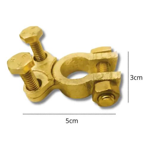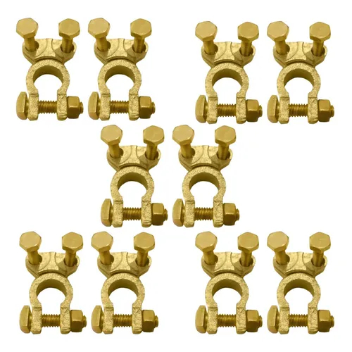 ESPECIFICAÇÕES TÉCNICAS Terminal utilizado para conectar a bateria do seu carro ou auxiliar, excelente para sistemas de som automotivo, ou reposição do original - Material: Latão Fundido - Para cabos de 16 a 95mm - Polo negativo e positivo (identificação de polaridade na peça) - Para baterias de 12v CONTEÚDO DA EMBALAGEM 20 x Terminais de bateria (10 Pares)
