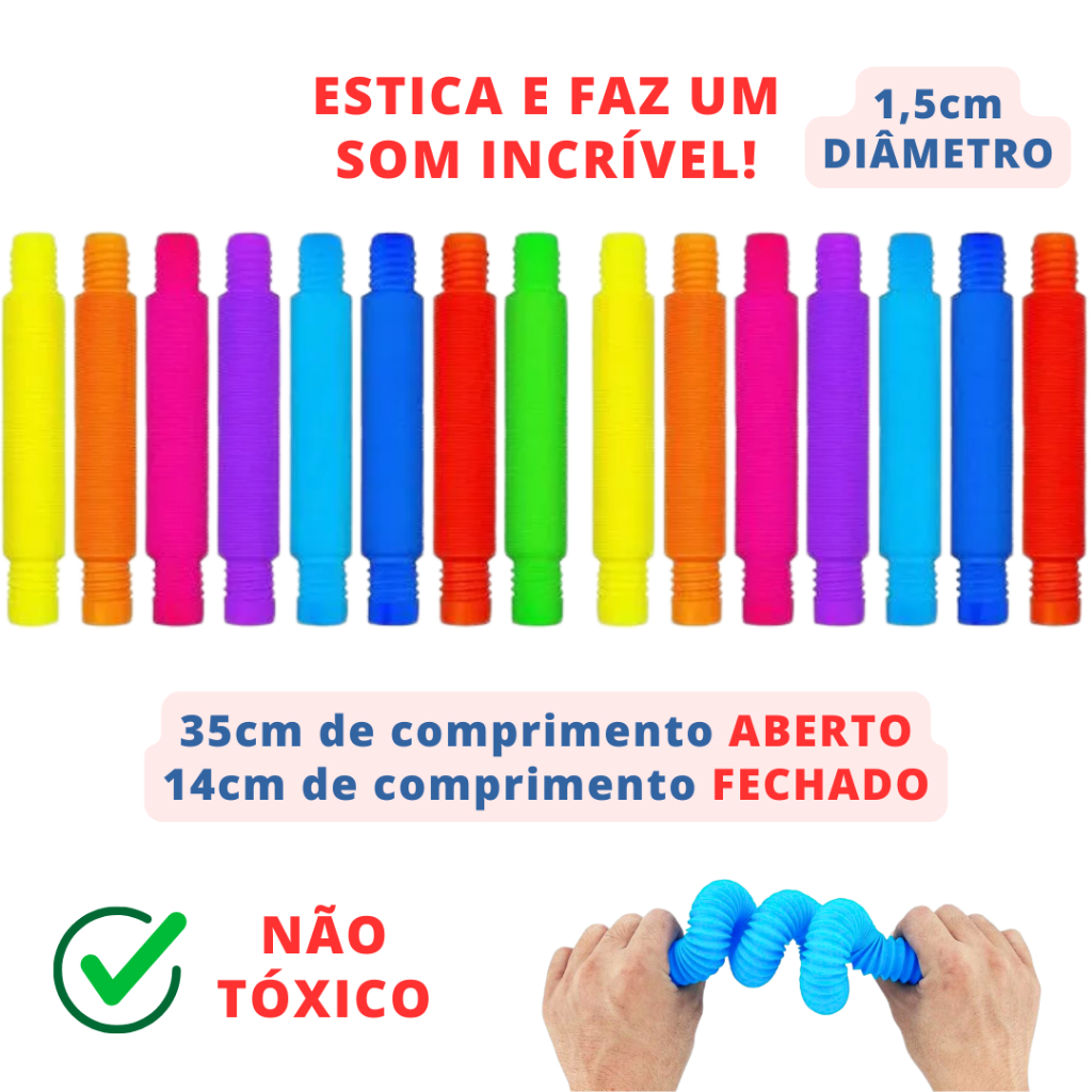 Kit 20 unidades POP TUBE 14cm Tubo Fidget Toy Sensorial Descompressão Anti Stress