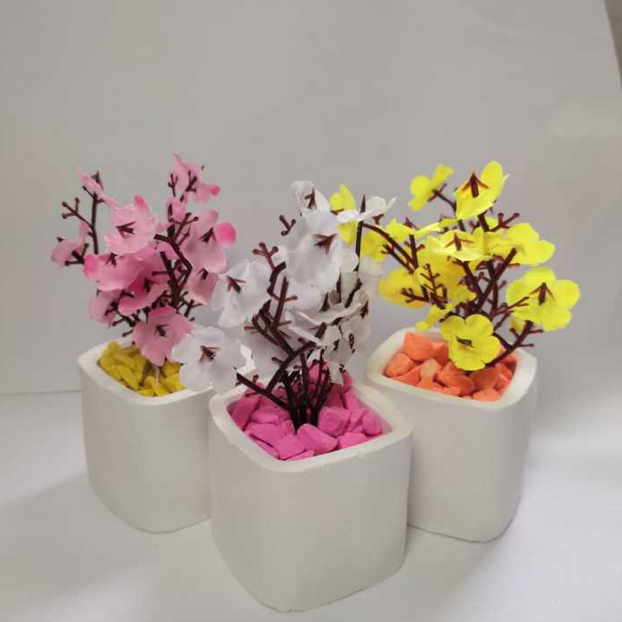 kit 20 vasinhos de gesso quadrado impermeabilizado com flores e pedrinhas para lembrancinhas