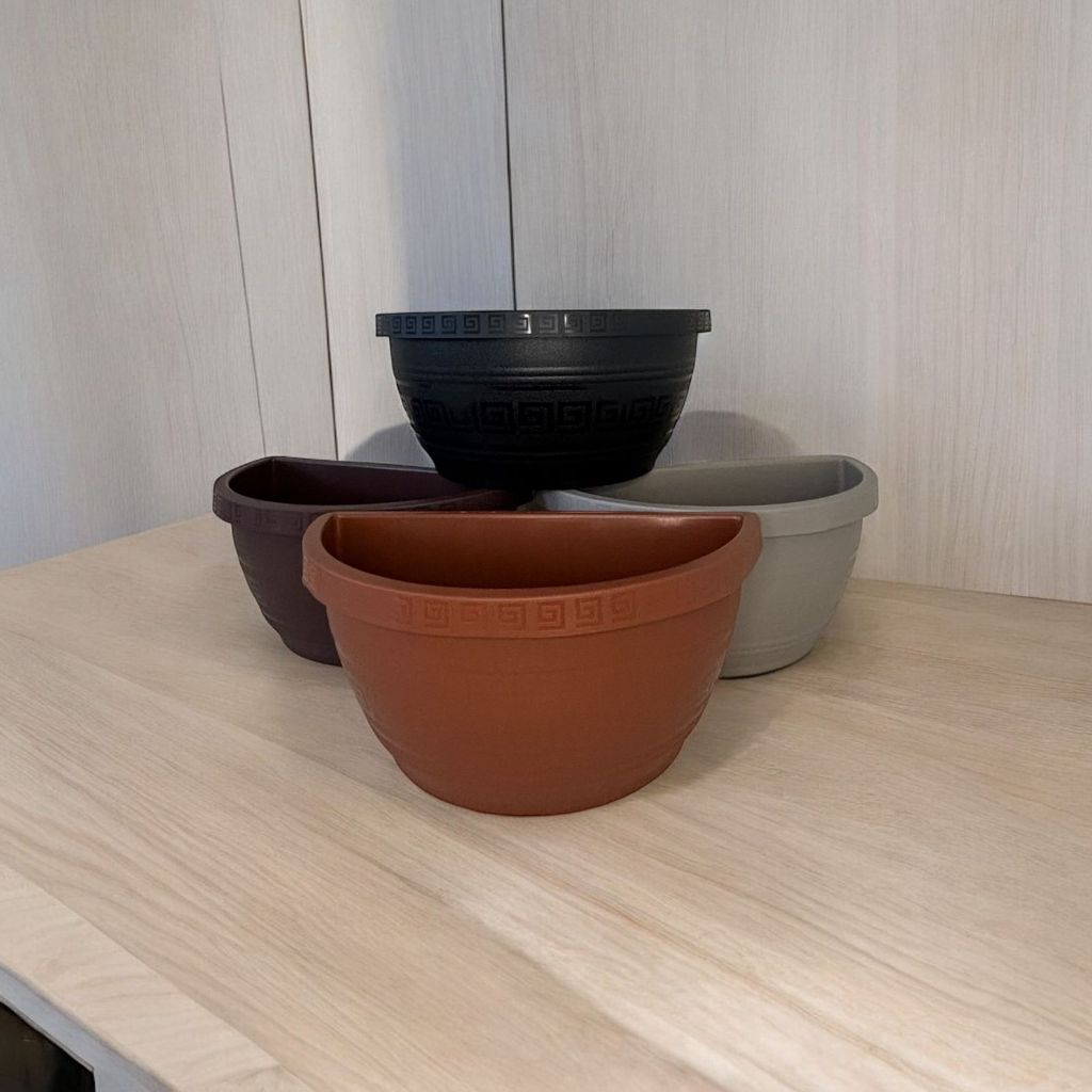 Kit 20 Vasos de parede meia lua 1,7 litros em plástico resistente e reforçado. Ideal para decoração de jardim, varanda, quintal e muito mais... Comprimento: 12,8 cm Largura: 27 cm Altura: 10,5 cm Capacidade: 3,3 litros Material: Plástico