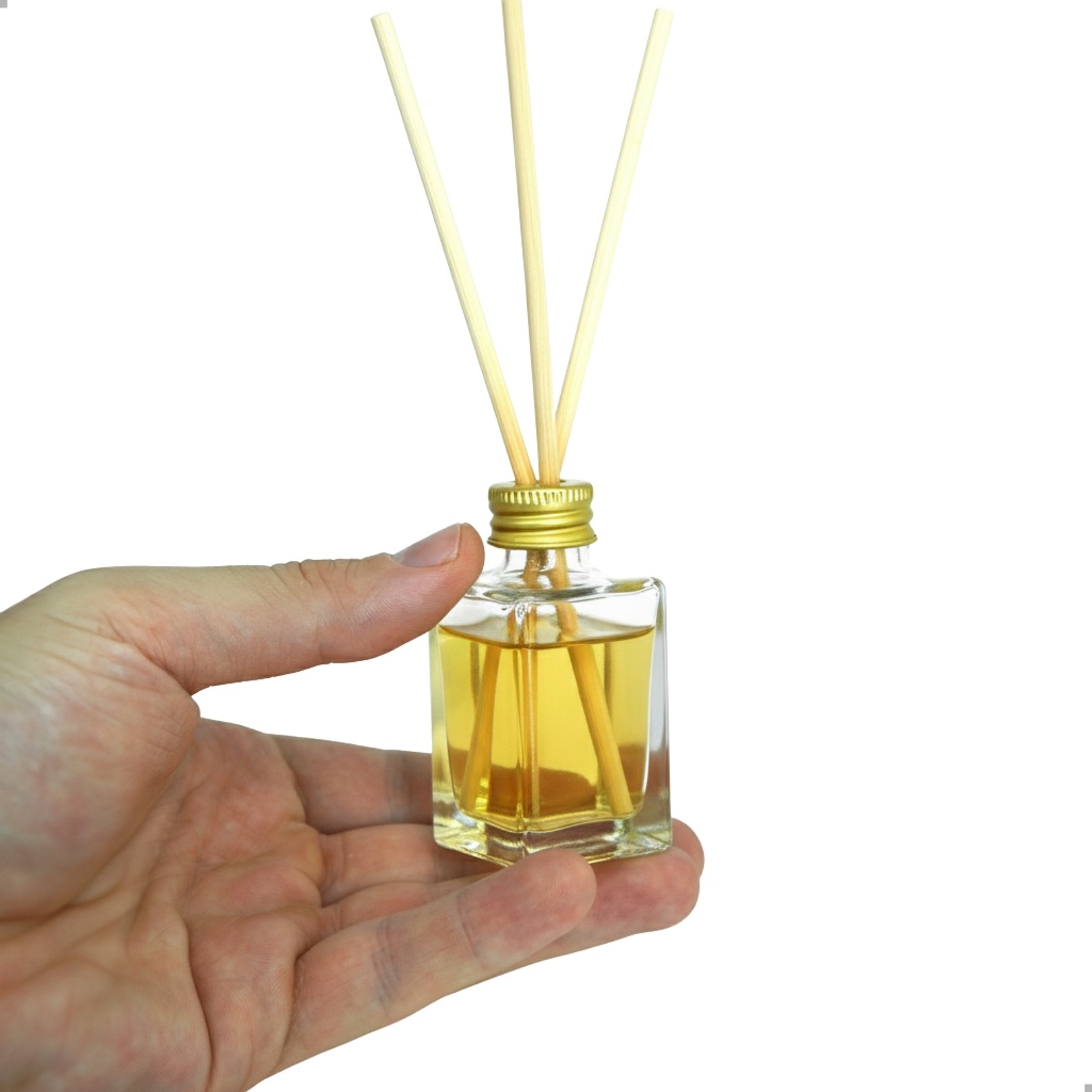 Kit 20 Vidro Aromatizador Cubo Dourado 30ml Tampa Varetas