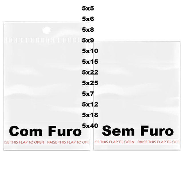 kit 200 100 Saco Adesivo Saquinhos transparente FURO 5x5 5x6 5x8 5x9 5x10 5x15 5x22 5x25 5x7 5x12 5x18 5x40 FUROS SOLAPA para embalagem grande maior de Joias Bijuterias Presente