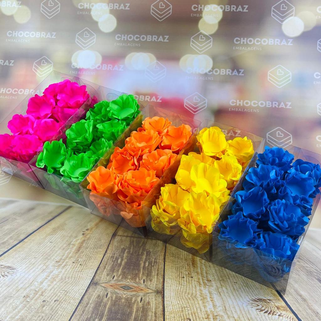 KIT 200 Forminhas De Doces Festa 5 Cores ROSA NEON +VERDE NEON + LARANJA N+ AMARELO NEON + AZUL NEON