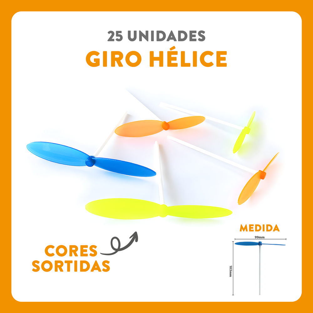 BENEFÍCIOS: • Kit com 25 Giro Hélices, 25 Mini Pião, 25 Línguas de Sogra, 25 Cornetas, 25 Carrinhos F1, 25 Reloginhos, 25 Anéis e 25 Pulseiras. • Ideal para sacolinhas surpresa, lembrancinhas e festas infantis; • Brinquedos leves, seguros e cores sortidas; • Perfeito para revenda, brindes escolares e eventos; • Diversão garantida para crianças e adultos. 🏷️ Marca: Fabricação Própria 🛠️ Material: Plástico e papel (línguas de sogra) 📏 MEDIDAS: Mini brinquedos (tamanho infantil) ⚠️ Não recomendado para menores de 3 anos. ℹ️ IMPORTANTE: Compra Segura Com Garantia Shopee ✅ Somos Vendedores Indicados Pela Shopee. ✅ Enviamos dentro de 6 horas úteis.✅