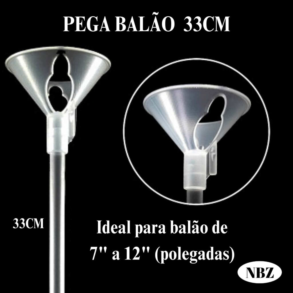 Haste e ponteiras/cúpula pega balão – plástico – 33 cm indicadas para balões: 7” – 9” – 10” – 11” – 12” (polegadas) • Material: plástico. • Cor: transparente/cristal. • 3,0 cm altura ponteira. • 30 cm de altura hastes. • 33cm altura final. • 3,5 cm diâmetro da ponteira. • 5 mm diâmetro interno de encaixe. Envio em até 8h úteis!! Estamos disponíveis para retirada de dúvidas!