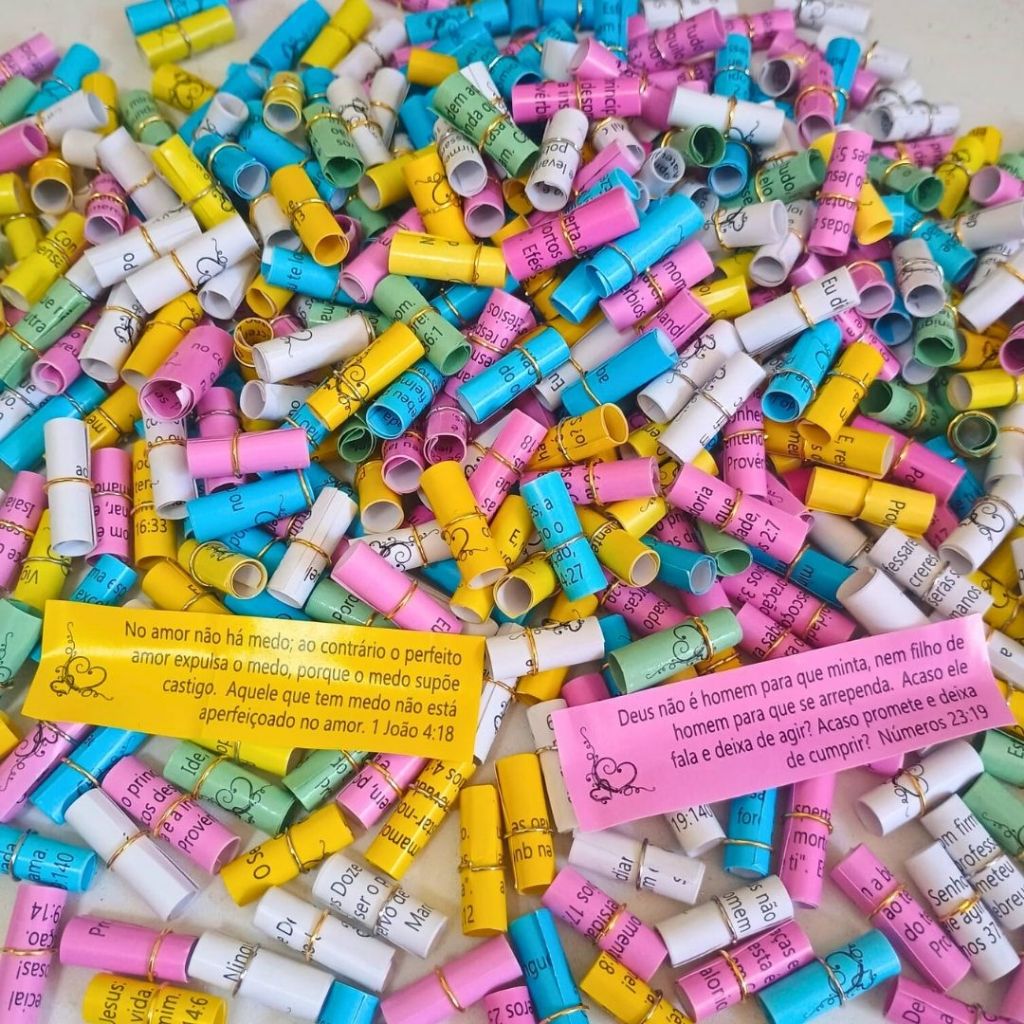 Kit 200 Versículos Bíblicos Enroladinhos para Lembrancinhas em Igrejas, Casamentos e Eventos