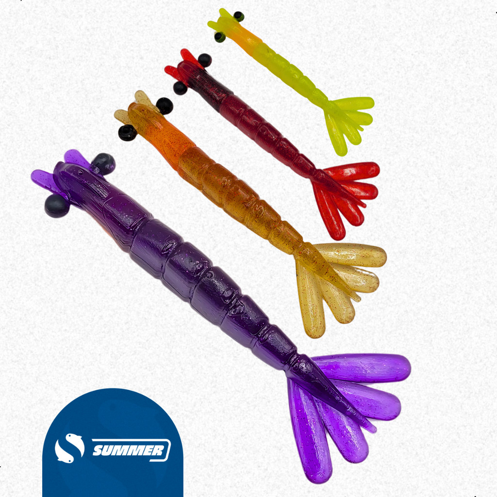 Camarão Artificial de alta qualidade, produzido em Plastisol material que não derrete, alguns tamanhos possuem ovas de diferentes cores na cabeça o que o deixa ainda mais parecido com o natural, aumentando assim a captura e fisgada de ótimos exemplares. Indicado para pesca de Robalo, Tucunaré, Pescadas, Xaréu, Corvina, Garoupa e outras espécies predadoras ou que se alimentam de camarões. ESPECIFICAÇÕES: Marca: Summer Material: Plástisol Tamanho dos camarões: 1- Pç - 6cm Cor Chá Claro 1- Pç - 6cm Cor Verde Limão 1- Pç - 6cm Cor Verde Violeta 1- Pç - 6cm Cor Vermelho 1- Pç - 6cm Cor Dourado 1- Pç - 8cm Cor Dourado 1- Pç - 8cm Cor Vermelho 1- Pç - 8cm Cor Chá Claro 1- Pç - 8cm Cor Violeta 1- Pç - 8cm Cor Verde Limão 1- Pç - 9cm Cor Verde Limão 1- Pç - 9cm Cor Floresta 1- Pç - 9cm Cor Dourado 1- Pç - 9cm Cor Violeta 1- Pç - 9cm Cor Chá Claro 1- Pç - 12cm Cor Violeta 1- Pç - 12cm Cor Chá Claro 1- Pç - 12cm Cor Dourado 1- Pç - 12cm Cor Floresta 1- Pç - 12cm Cor Verde Limão Jig Head: 1Pç - 2/0 7g 1Pç - 2/0 10g 1Pç - 3/0 12g 1Pç - 3/0 15g