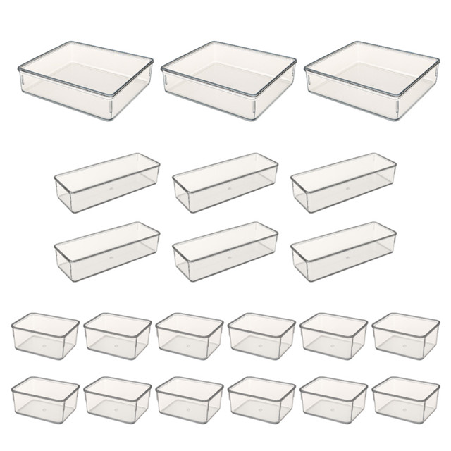 Kit 21 Organizador Modular Multiuso Acrílico Cristal Cesto Gaveta Maquiagem Geladeira