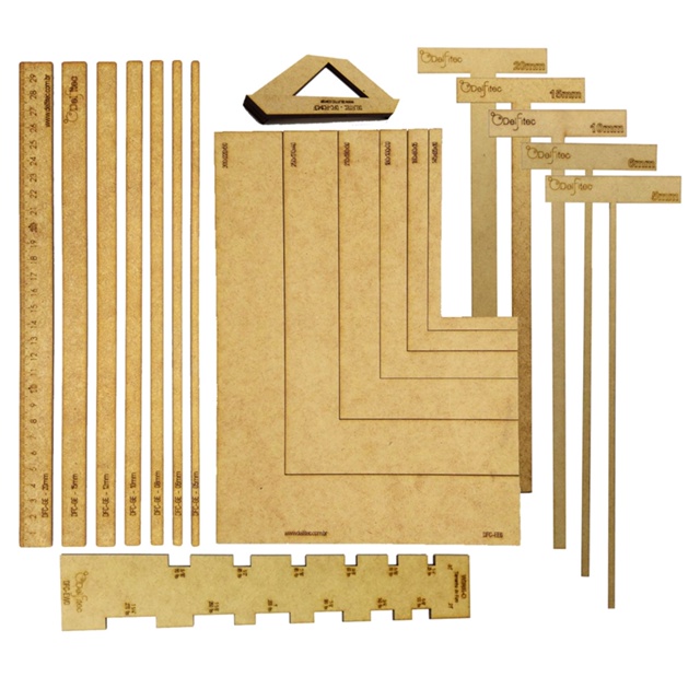 Kit 21 Peças Completo Encadernação Cartonagem Esquadros, Regua T, Fio de Cabelo Gabaritos Wire-o MDF