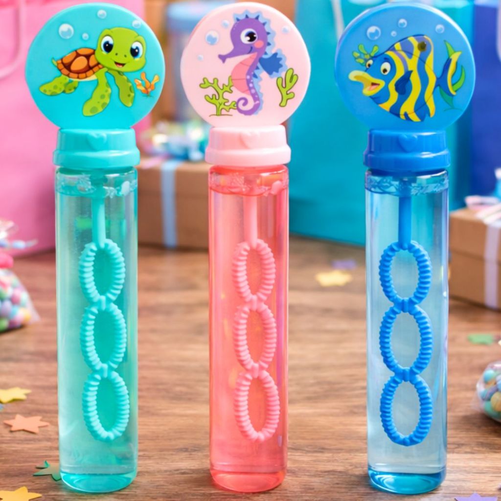 BOLHA DE SABÃO INFANTIL Transforme qualquer festa em um momento divertido e encantador! Nossas bolhas de sabão Bubble Stick Sereia E Fundo do Mar, são ideais para lembrancinhas de festas infantis, eventos escolares e também para quem trabalha com revenda e comércio. Produto prático, colorido, leve e com excelente aceitação — um verdadeiro sucesso! VALIDADE INDETERMINADA ✔️ Pode ser comprado com antecedência para festas ✔️ Ideal para estoque e revenda ✔️ Sem preocupação com vencimento ou perdas INFORMAÇÕES DO PRODUTO -Tipo: Bolha de Sabão -Altura do tubo: 15 cm -Conteúdo: 20 ml por unidade -Produto pronto para uso -Indicado para festas, eventos e uso infantil Disponível em: ✔️ Caixa com 24 unidades Escolha o tema que mais combina com sua festa ou loja: -Sereia -Fundo do Mar - Tubarão Ideal para quem compra para lembrancinhas ou para quem deseja revender em maior volume.