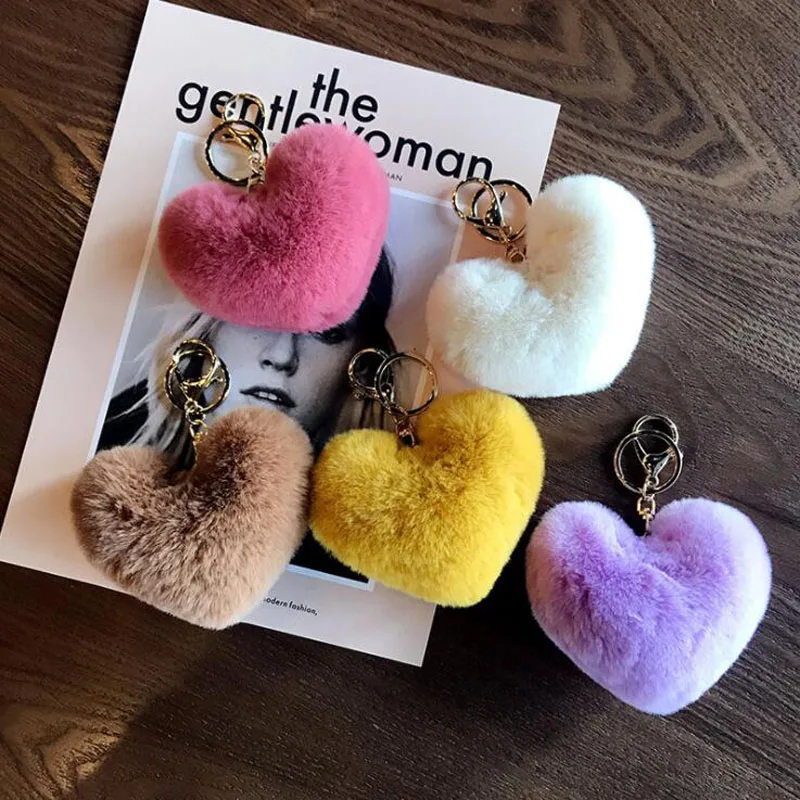 kit 24 Chaveiros de Coração Pompom Liso Ou Colorido Pelúcia Fofa