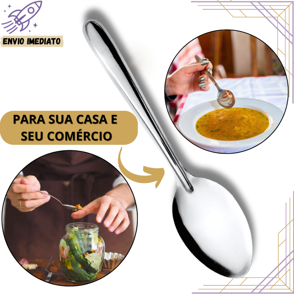 SEJA MUITO BEM VINDO A CASA ETÉREA Conjunto de Colheres de Inox – Talheres Premium – Durabilidade e Elegância Transforme sua experiência com o Conjunto de Colheres de Inox. Se você procura durabilidade, elegância e praticidade, o conjunto de colheres de inox é a escolha perfeita. Produzido em aço inoxidável de alta qualidade, ele oferece resistência à oxidação e acabamento sofisticado, tornando seu dia a dia mais funcional e estiloso. Ideal para uso diário, eventos e ocasiões especiais. ✨ Diferenciais que você vai amar: * Material: Aço inoxidável de alta resistência * Medidas: 18 cm (colher de mesa) / * Cor: Prata metálico polido * Peso: 127g (conjunto com 6 peças) * Itens inclusos: 6 Colheres de Inox (mesa) * Outros detalhes: Resistente à corrosão, fácil de limpar, compatível com lava-louças 💡 Por que escolher este produto? ✅ Alta durabilidade e resistência à oxidação ✅ Design moderno e elegante ✅ Fácil de higienizar e seguro para alimentos 📦 Informações importantes: * Envio rápido e seguro 🚚 * Suporte pós-venda 🔥 Garanta já o seu Conjunto de Colheres de Inox e leve mais elegância e qualidade para sua mesa. Clique em “Comprar agora” e receba no conforto da sua casa!