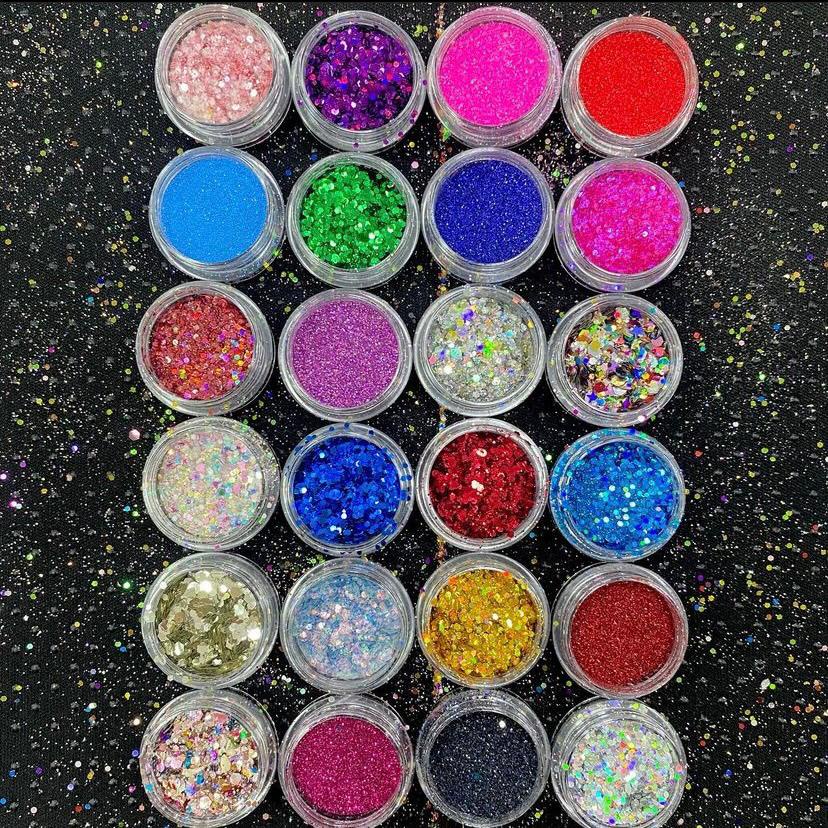 Kit 24 Glitter Holográfico Unha Gel Mix Encapsulada Nail Art Decoração Profissional PRONTA ENTREGA