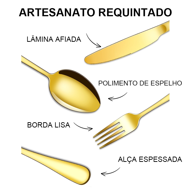 ✨✨Bem-vindo à ManufaturaPrecisa🔧🔨! 💖O conjunto de talheres 24 PCS inclui 6 cada: Colher de Jantar, Garfo de Jantar, Faca de Jantar, Colher de Chá. 🍽️🍴🍴Este conjunto de talheres de 24 peças com peças para servir é feito de aço inoxidável premium que garante a sua saúde, Robusto o suficiente para enfrentar o uso diário, Resistente à ferrugem e durável por muitos anos Conjunto de talheres de aço inoxidável para 6 pessoas, ideal para uso doméstico diário, hotel, restaurante, entretenimento, festa, buffet, bistrô, camping, piquenique 👪🎊🎈 O conjunto de talheres de aço inoxidável polido é muito fácil de limpar. A superfície lisa e o polimento espelhado fazem com que esses talheres continuem brilhando, o design moderno clássico simples combinaria bem com os talheres existentes e elevaria as refeições do dia a dia em uma experiência gastronômica requintada. 🍴🍷🍽️Este conjunto de faqueiros adiciona elegância elegante a cada mesa de jantar e com certeza trará estilo e talento para todas as refeições. - Material: feito de aço inoxidável de alta qualidade, que é resistente à corrosão e oxidação, é durável. - Proteção ambiental: diga não aos utensílios de mesa descartáveis ou aos utensílios de mesa plásticos. Esta é uma maneira ambientalmente amigável de usar utensílios de mesa reutilizáveis. - Superfície lisa: usando a tecnologia de polimento de espelho, a superfície é lisa e fácil de limpar. - Seguro de usar: não-tóxico, seguro, de alta qualidade, high-end, criativo, mas a máquina de lavar louça não é recomendada. Mantenha-o seco após a limpeza. - Punho confortável: punho antiderrapante, que não cobre sujeira, é saudável e higiênico, com uma aparência simples e elegante e uma forma simples e elegante. Características: - Acabamento requintado, a busca da perfeição em cada detalhe. - A borda da colher de garfo é lisa, não é fácil arranhar a ferida, e é mais confortável de usar. - Ideal para jantares, aniversários e festas de férias, celebrações e casamentos. 🍷 ✨🎊🎉 - Resistente ao calor e à prova de ferrugem, pode ser perfeitamente combinado com outros utensílios de mesa. - Cor: Preto/Prata/Dourado - Medidas Aproximadas dos Talheres: - 4 × Garfo: 20,7 cm - 4 × Faca : 23,3 cm - 4 × Colher Sopa: 20,5 cm - 4 × Colher Café: 13,8 cm