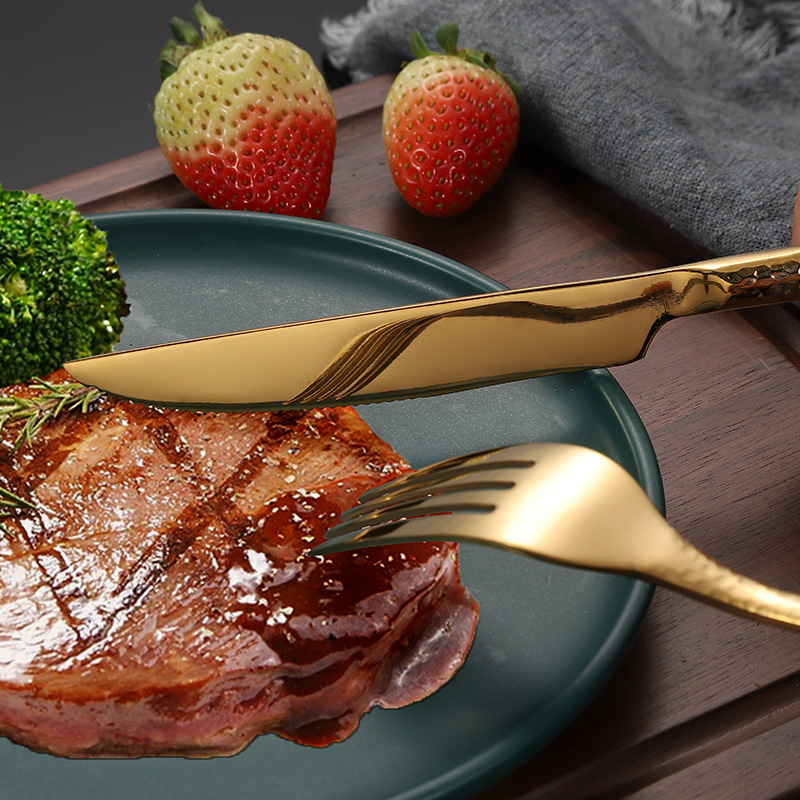 Kit 24 Jogo De Talheres Para Bife Aço Inoxidável Dourados Com Colher Pequena