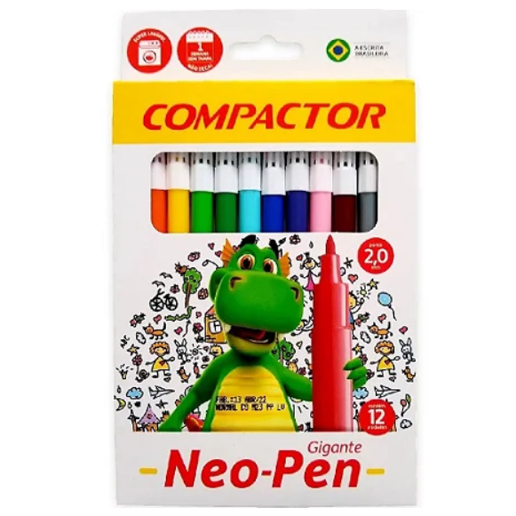 KIT 24 LÁPIS MULTICOLOR +12 Canetinha Hidrográfica 12 Cores Neo-Pen Gigante Compactor