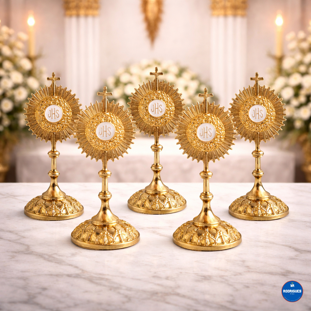 Kit 24 Ostensórios Dourados 6cm com Base Removível – Lembrancinhas Católicas para Primeira Comunhão, Batizado e Crisma aparece na subcategoria Artigos Religiosos e de Fengshui (de Casa e Construção) na Shopee Brasil por R$ 129,90 (12% de desconto sobre o preço original de R$ 147,61). Avaliado em 5.0/5 pelos compradores e 2 unidades vendidas, este produto se destaca pelo excelente custo-benefício.