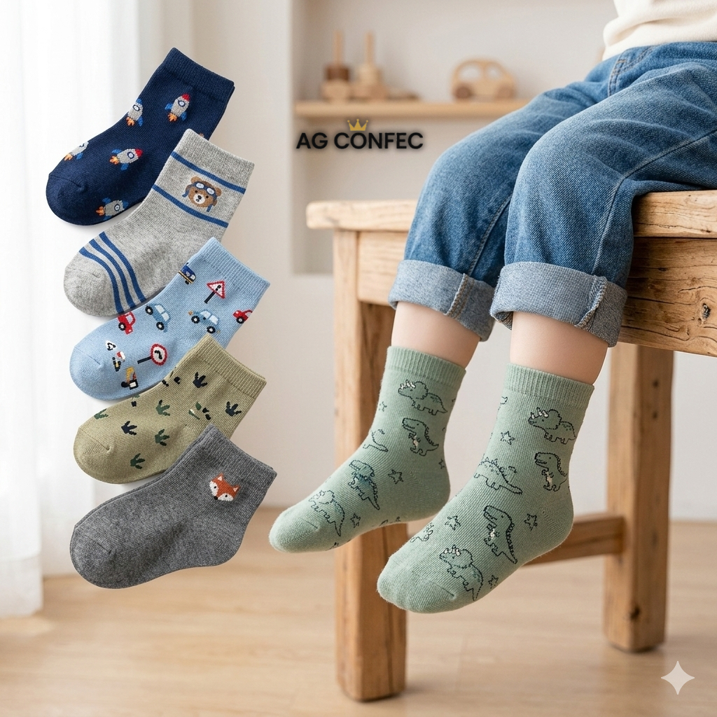 Kit 24 Pares de Meias Masculino Infantil e Bebê Menino Meias Algodão Confortáveis