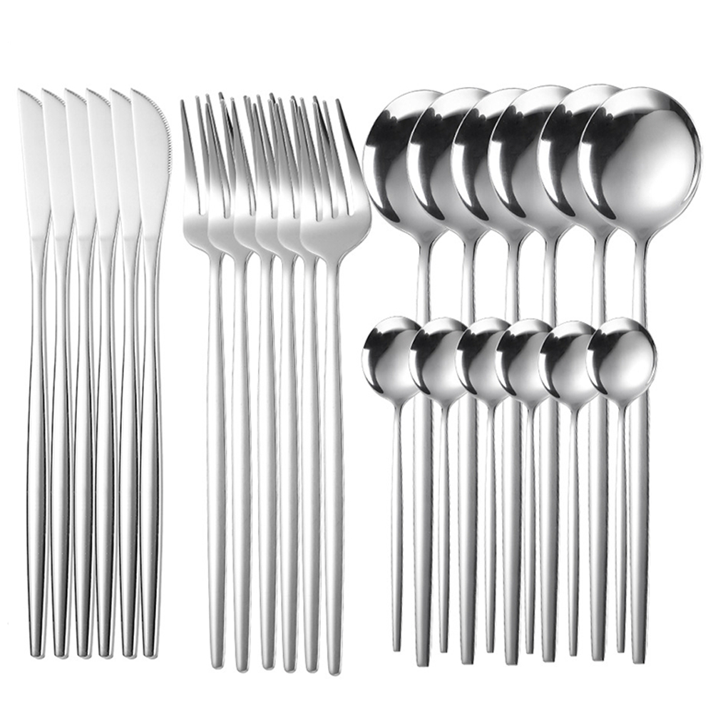 Kit 24 Peças Aço Inoxidável 416 Jogo De Talheres Prata FDA CE LFGB ROHS