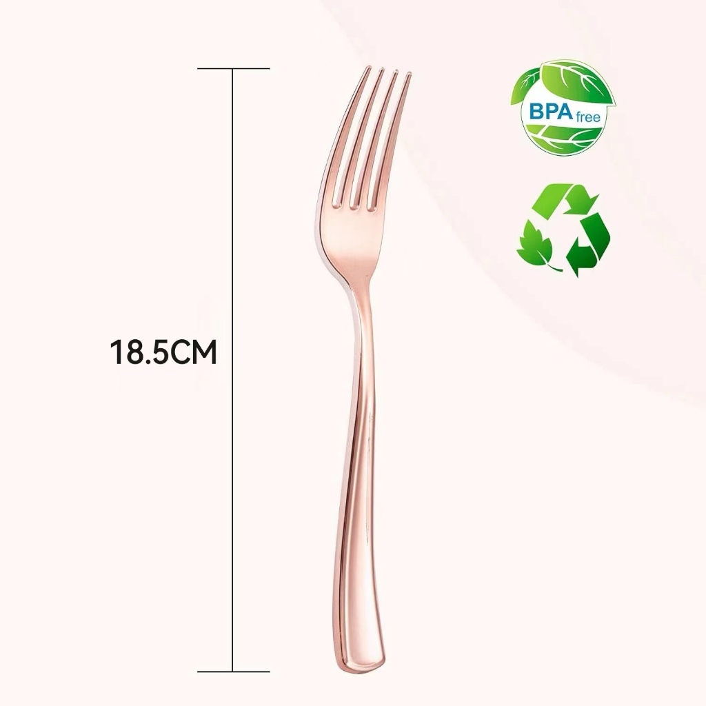Kit 24 peças Descartável Luxo Garfo Faca De Ouro Rosa, 12 garfos 12 facas, talheres de plástico resistentes para festas