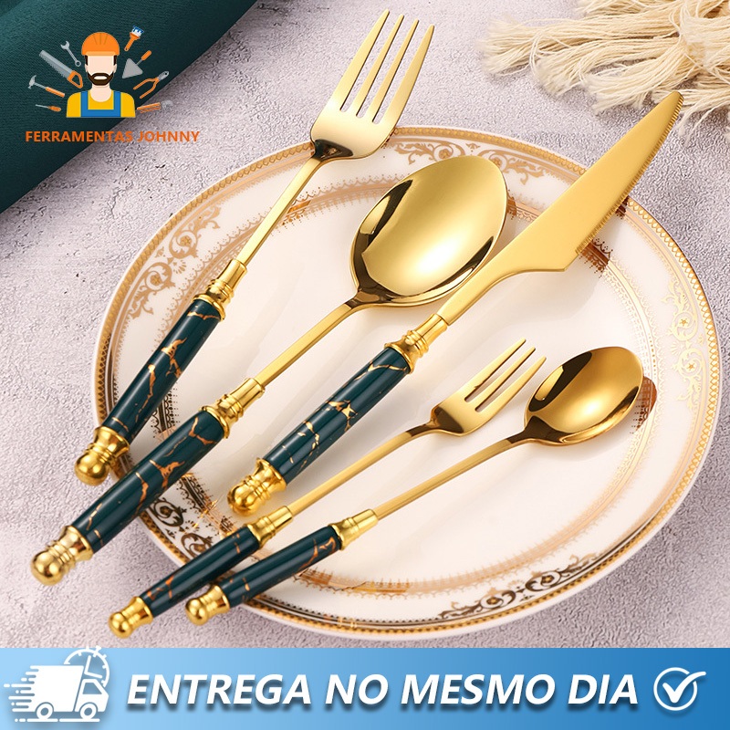 Kit 24 peças Talheres Colher Garfo Faca Luxo Linha Ouro para uso doméstico, banquetes e ocasiões festivas