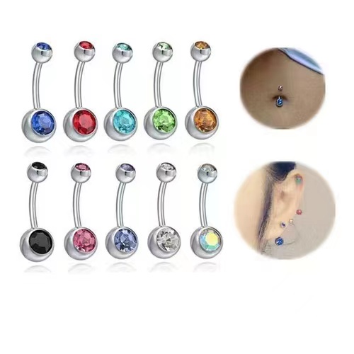 Kit 24 Piercing de Umbigo com 2 pedras Aço Inoxidável prata colorido