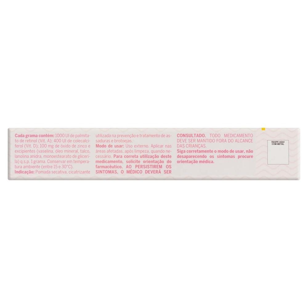 KIT C/ 24 UNIDADES - Pomada Para Prevenção De Assaduras Babymed Menina 45g DESCRIÇÃO DO PRODUTO Babymed pomada é ideal para proteger a pele do bebê contra assaduras. Indicada para prevenir assaduras, formando uma camada protetora na pele do bebê que a mantém longe do cocô e do xixi. Deixa a pele do bebê sempre hidratada e bem nutrida, pois possui em sua formulação as vitaminas A e E. Fácil de usar, espalhar, limpar e remover. Pomada dermatológica de uso tópico, externo e pediátrico. MODO DE USAR Limpe cuidadosamente a pele do bebê e aplique a pomada sobre a área a proteger, massageando suavemente. Utilize a cada troca de fraldas. CONTRAINDICAÇÕES Em casos de hipersensibilidade (alergia) aos componentes da fórmula. PRECAUÇÕES Se observar alguma reação desfavorável suspenda o uso e procure um médico. Não aplicar sobre a pele irritada ou ferida. Conservar em local fresco, seco e protegido da luz. Mantenha o produto fora do alcance de crianças.