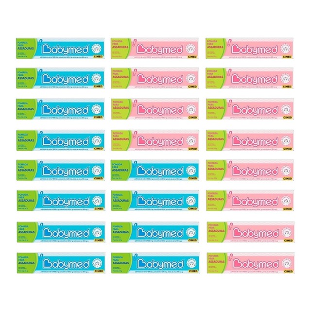 Kit com 24 unidades Babymed (12 Babymed Azul / 12 Babymed Rosa) BABYMED POMADA é ideal para proteger a pele do bebê contra assaduras. Indicada para prevenir assaduras, formando uma camada protetora na pele do bebê que a mantém longe do cocô e do xixi. Deixa a pele do bebê sempre hidratada e bem nutrida, pois possui em sua formulação as Vitaminas A e E. Fácil de usar, espalhar, limpar e remover. Pomada dermatológica de uso tópico, externo e pediátrico.