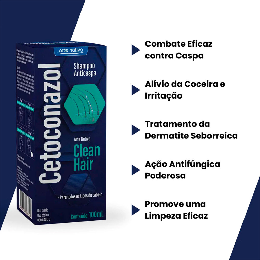 Kit 24 und Shampoo Anticaspa Cetoconazol Clean Hair 100 ml Cetoconazol 1% USO DIÁRIO – USO TÓPICO – USO ADULTO PARA TODOS OS TIPOS DE CABELOS APRESENTAÇÃO: Cartucho contendo frasco branco de 100mL COMPOSIÇÃO:Cetoconazol/ Ketoconazole, Água/ AQUA, Coco Amido Propilbetaina/ COCAMIDOPROPYLBETAINE, Dietanolamina de Ácido Graxo de Coco/ COCAMIDE DEA, Metilcloroisotiazolinona/ METHYLCHLOROISOTHIAZOLINONE, Metilisotiazolinona/ METHYLISOTHIAZOLINONE, EDTA Dissódico/ DISODIUM EDTA, Glicerina/ GLYCERIN, Poliquatérnio/ POLYQUATERNIUM 7, Ácido Cítrico/ CITRIC ACID, Corante Vermelho/ CI 16035, Lauril Éter Sulfato de Sódio/ SODIUM LAURETH SULFATE, Trietanolamina/ TRIETHANOLAMINE, Fragrância/ PARFUM, ALPHA – ISOMETHYL IONONE, CITRAL, LIMONENE, LINALOOL. MODO DE USO: Aplicar generosamente o Shampoo de Cetoconazol nos cabelos úmidos. Massageie suavemente distribuindo o produto por todo o cabelo. Deixe agir por 5 minutos e enxágue. Para um melhor resultado, use o shampoo de Cetoconazol diariamente durante 3 semanas. Depois deste período, utilize-o pelo menos duas vezes por semana, para evitar o reaparecimento das caspas. FINALIDADE DE USO: Xampu anticaspa, antiqueda. O Shampoo Anticaspa Cetoconazol 1% Clean Hair Arte Nativa ajuda na eliminação e prevenção do reaparecimento do fungo causador da caspa. É Indicado para o alívio da caspa, reduzindo o desconforto da coceira. CUIDADOS DE CONSERVAÇÃO:Conservar em local fresco e ao abrigo da luz e calor. ADVERTÊNCIAS: Produto de uso cosmético. Para uso externo apenas. Caso ocorra irritação ou coceira intensa, suspender o uso e procurar orientação médica. Mantenha fora do alcance de crianças. Em caso de contato acidental com os olhos, enxágue abundantemente com água. Registro M.S.: Nº do Processo: 25351.105801/2023-14 – Cosmético Grau 2 Aut. Func.: 2.04.396-1