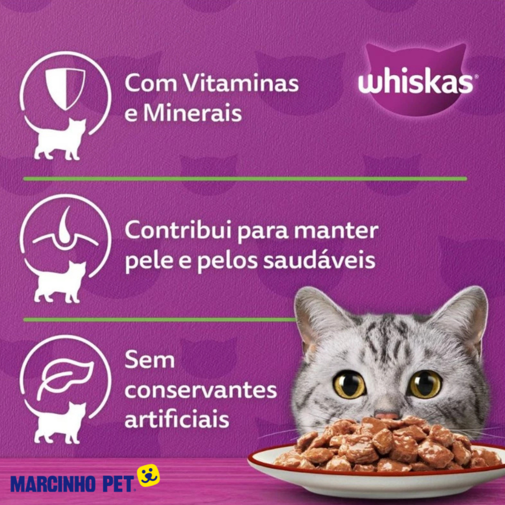 | kit 24 unidades Whiskas Sachê 85g Sachê para Gatos Adultos Sabores ... este produto | R$ 66,90 | 8% | 5.0/5 | 141 |