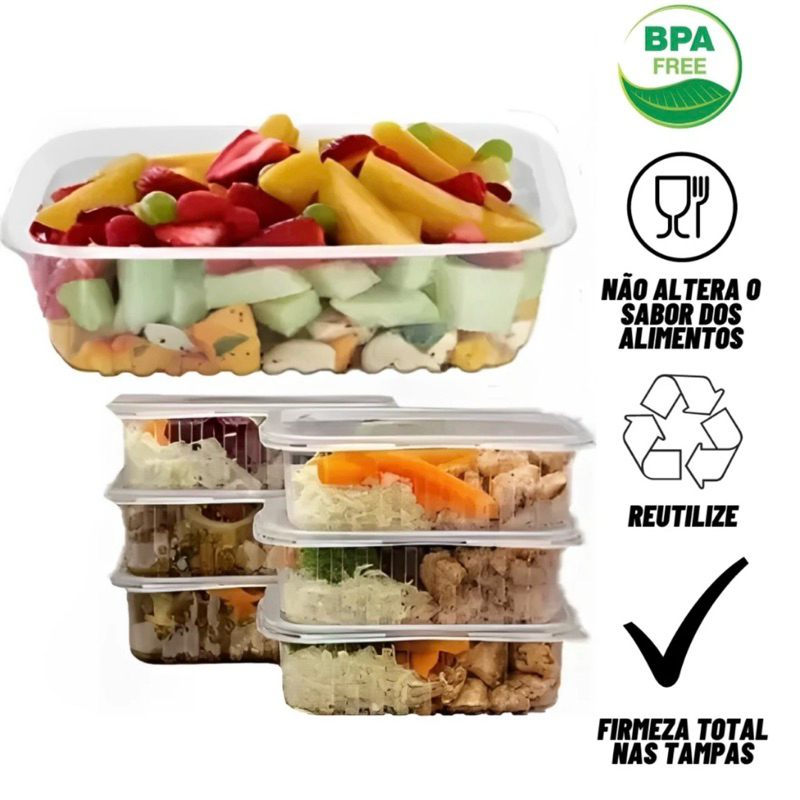 Kit 25~96 Unid. Pote Plastico Retangular Descartável 500 ml Microondas Freezer Marmita Fit OFF