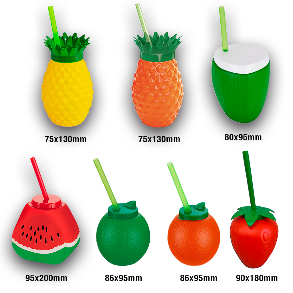 Kit 25 Copos Formato Fruta Com Canudo Festa Pool Party Tematica Tropical