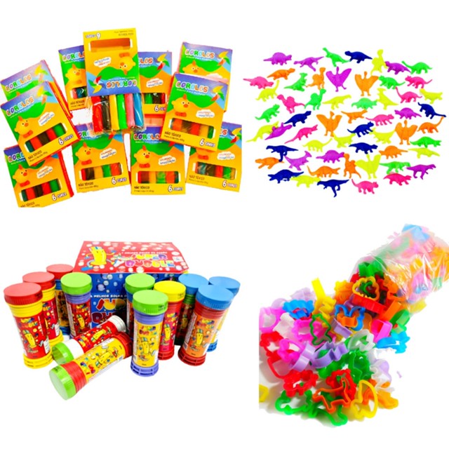 Kit 25 Cx Massinha de Modelar + 25 Bolha de Sabão + 50 Moldes + 25 Bicho Cresce Na Agua Lembrancinha