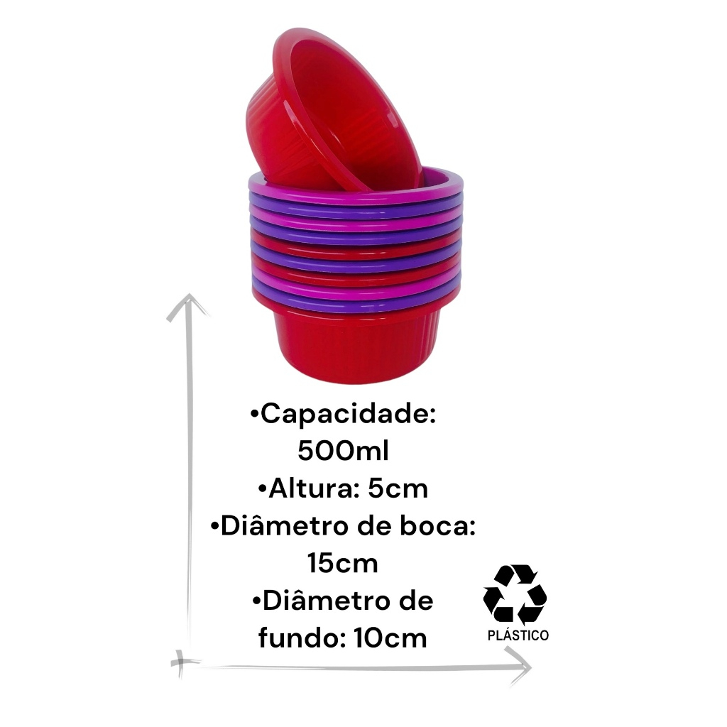 Kit composto por 25 mini bacias de plástico, com capacidade de 500ml. Medidas do produto anunciado: Capacidade: 500ml Altura: 5 Cm Diâmetro de Boca: 14,5 cm Diâmetro de Fundo:10 cm Este Kit Atacado de 25 Mini Bacias Caneladas Coloridas é perfeito para quem busca praticidade e versatilidade na cozinha. Com capacidade de 500ml, as bacias são ideais para armazenar alimentos, preparar receitas e até mesmo servir petiscos de forma criativa. Feitas em plástico resistente, são aptas para micro-ondas e lava-louças, facilitando a limpeza e o uso diário. Com um diâmetro de 10cm e altura de 5cm, são compactas e fáceis de armazenar. Adquira já o seu kit e tenha mais praticidade no seu dia a dia culinário.