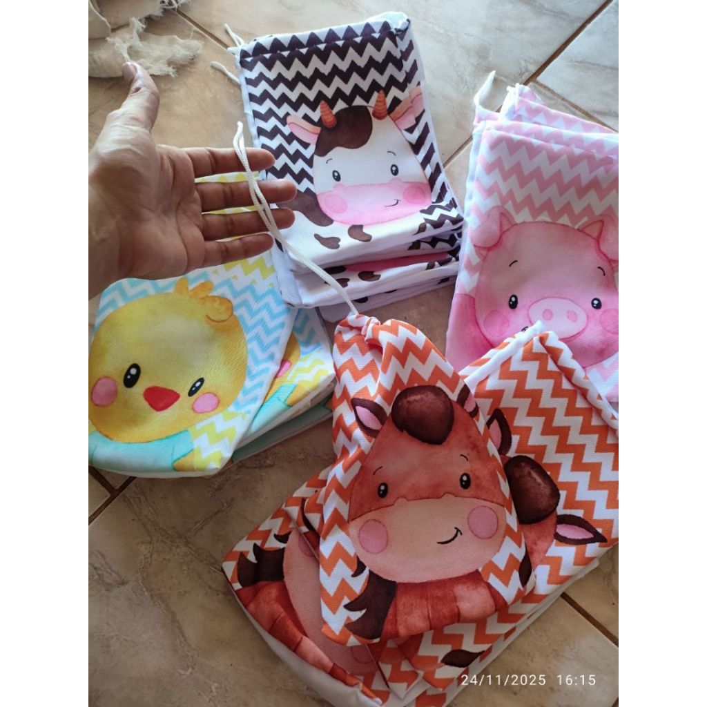KIT 25 SACOLINHAS DE TECIDO BICHINHOS FAZENDA SEM NOME