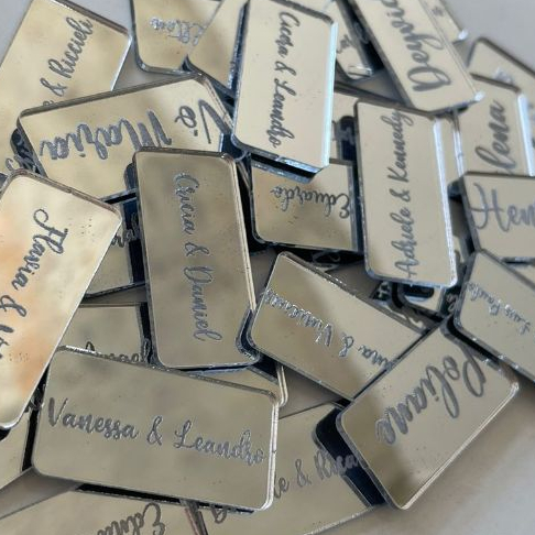 Kit 25 tag Retangular Acrílico Prata Dourado Rose