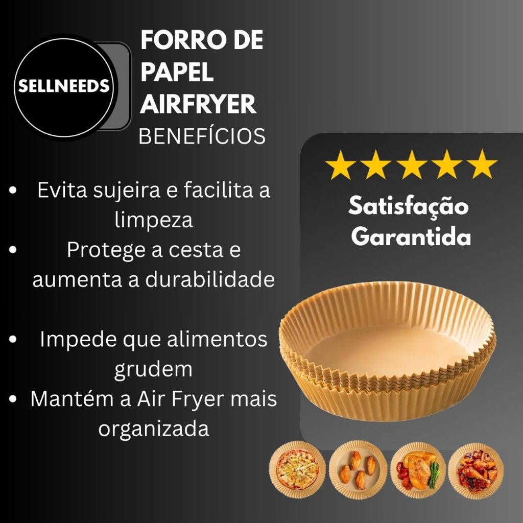Kit 250 Forro Papel Airfryer Descartável Forma Antiaderente