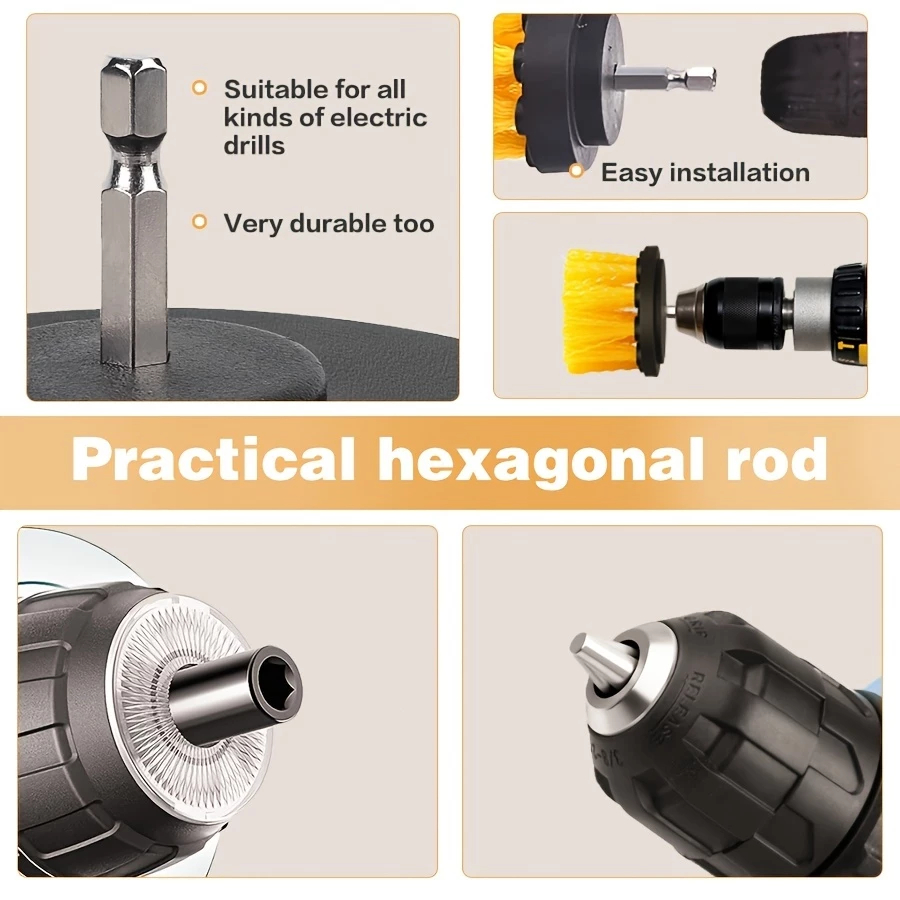 Desejo-lhe uma boa compra! Características do produto: Diferentes tipos de escovas atendem a diferentes necessidades e podem ser usadas em diferentes peças. A parte da cabeça da escova adota cerdas que são mais duráveis que escovas comuns. Não precisa trocar as cerdas com frequência. Tamanho pequeno e fácil de transportar. Pode ser colocado no carro sem ocupar muito espaço. Desfrute de um ambiente saudável usando experiência em um ambiente saudável. Conjunto de 26 peças Cerdas de Nylon de dureza média - Cerdas de Nylon de dureza média - Encaixe Universal para mandril e chave de fenda de 1/4 polegadas Cor amarela e preta