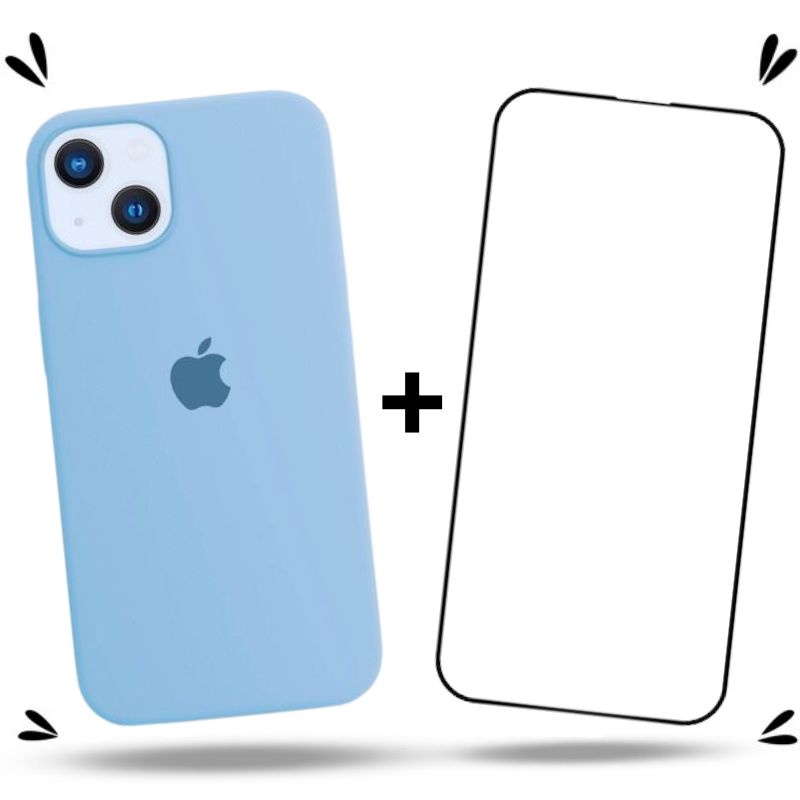 Kit 2em1 Capa + Pelicula 3D Para iPhone 13 Normal - Case Silicone Aveludada + Pelicula de Vidro 3D Full Cover