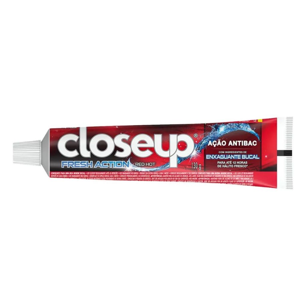 Pasta De Dentes Closeup Fresh Action Red Hot Em Gel 130g Principais Características: - Sensação Refrescante e Duradoura: A formulação em gel proporciona uma sensação de frescor imediato e duradouro, combatendo o mau hálito de forma eficaz. - Branqueamento e Limpeza Profunda: Remove manchas superficiais dos dentes e limpa profundamente, deixando um sorriso mais branco e brilhante. - Proteção Completa: Contém ingredientes que protegem contra cáries, gengivite e outros problemas bucais. Benefícios: - Frescor prolongado ao longo do dia. - Melhora na confiança ao conversar de perto. - Prevenção de problemas bucais comuns. Diferenciais do Produto: - Tecnologia Avançada: Utiliza uma combinação de ingredientes que não só limpam, mas também ajudam a proteger e fortalecer os dentes. - Aroma e Sabor Agradável: O sabor Red Hot é uma combinação única que torna a escovação uma experiência agradável e revitalizante. - Embalagem Prática: Tubo de 130g com tampa flip-top para fácil abertura e dosagem adequada. Especificações Técnicas: - Peso: 130g Instruções de Uso: - Aplique uma quantidade adequada de gel na escova de dentes. - Escove todos os dentes por, pelo menos, dois minutos, duas vezes ao dia. - Enxágue bem a boca após a escovação. Avisos e Precauções: - Manter fora do alcance de crianças. - Não ingerir. - Em caso de irritação, suspender o uso e consultar um dentista. O que está incluso? - 2 Tubos de Pasta de Dentes Closeup Fresh Action Red Hot em Gel 130g DÚVIDAS FREQUENTES Os produtos são originais? Sim. Todos os nossos produtos são originais. Emitem nota fiscal? Sim. Emitimos nota fiscal para todos os pedidos.