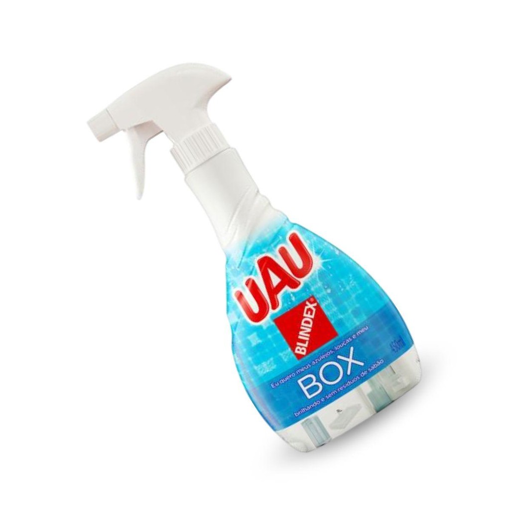 Kit 2un Detergente Limpa Box UAU Spray 450ml Especialista que te ajuda a tirar os resíduos de gordura, sabão e evita a formação de manchas d?água em box, azulejos e louças. Use Uau Blindex Limpa-Box nas louças, azulejos e boxes do banheiro. Como tomar banho com o box embaçado? Parece que por mais que você limpe, o box do banheiro nunca fica 100% limpo e isso é frustrante! UAU Blindex Limpa Box é fantástico foi desenvolvido justamente para te ajudar a remover os resíduos de gordura e sabão, sem deixar manchas. Possui ação hidrorrepelente que evita que as gotas de água grudem e manchem boxes e azulejos. Aplique o produto em uma esponja umedecida e espalhe esfregando as sujeiras e manchas. Enxágue até remover completamente o produto.