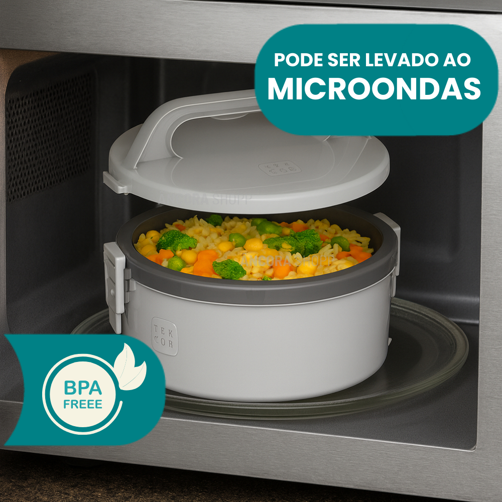Kit Marmita Térmica com 5 Peças – Conserva Alimentos Quentes ou Frios por até 4 Horas A marmita térmica mais tradicional do mercado, agora em um kit com 5 unidades. Ideal para uso no trabalho, em canteiros de obras, na agricultura ou para quem busca comida pronta no dia a dia. Feita para conservar os alimentos na temperatura certa, com fechamento seguro e alça resistente que facilita o transporte. O isolamento térmico em EPS garante praticidade e eficiência. Principais vantagens: Kit com 5 marmitas térmicas resistentes Presilhas para fechamento seguro Alça robusta para transporte Pode ir ao micro-ondas (sem a tampa) Isolamento térmico em EPS Livre de BPA (BPA Free) Eficiência térmica: Conserva quente por até 4 horas Conserva frio por até 4 horas Especificações: Capacidade: 5 recipientes de 1,5L cada Dimensões: 22,1 x 20,3 x 48,5 cm Peso: 1,255 kg Material: Polipropileno (PP) e EPS Conteúdo da embalagem: 3 marmitas sem divisão 1 marmita com divisão dupla 1 marmita com divisão tripla