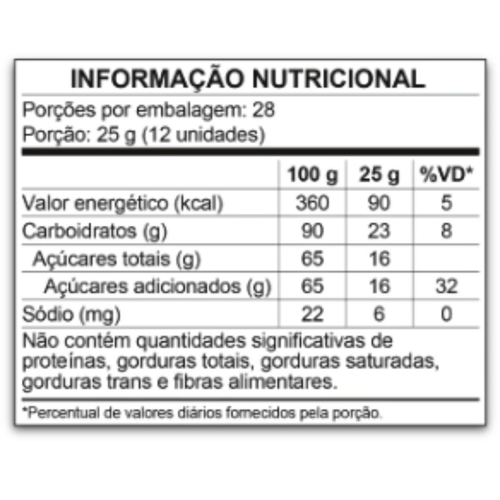 Vai maratonar uma série com os amigos ou jogar seu game favorito? A diversão só fica completa quando tem um pacote de Dori para acompanhar. Nossa linha de Indulgências conta com vários sabores e formatos. Tem gominhas de frutas, as nossas balas nostálgicas, nossos clássicos pirulitos mastigáveis e muito mais. Agora é só escolher o seu favorito e curtir à vontade todos os momentos de diversão. BALAS DE GOMA CONFEITADAS SABORES ANIS, ABACAXI, FRAMBOESA, LARANJA, LIMÃO, TANGERINA E SABORES ARTIFICIAIS DE UVA E MORANGO. COLORIDAS ARTIFICIALMENTE. INGREDIENTES: AÇÚCAR, XAROPE DE GLICOSE, AMIDO DE MILHO MODIFICADO, AROMATIZANTES, GLACEANTES GOMA LACA, ÓLEO VEGETAL, ÓLEO MINERAL GRAU ALIMENTÍCIO, CERA DE ABELHA, CERA DE CARNAÚBA E TALCO, CORANTE INORGÂNICO DIÓXIDO DE TITÂNIO, CORANTES ARTIFICIAIS AZUL BRILHANTE FCF, AMARELO TARTRAZINA, ERITROSINA, VERMELHO ALLURA Ac E AMARELO CREPÚSCULO FCF. NÃO CONTÉM GLÚTEN.